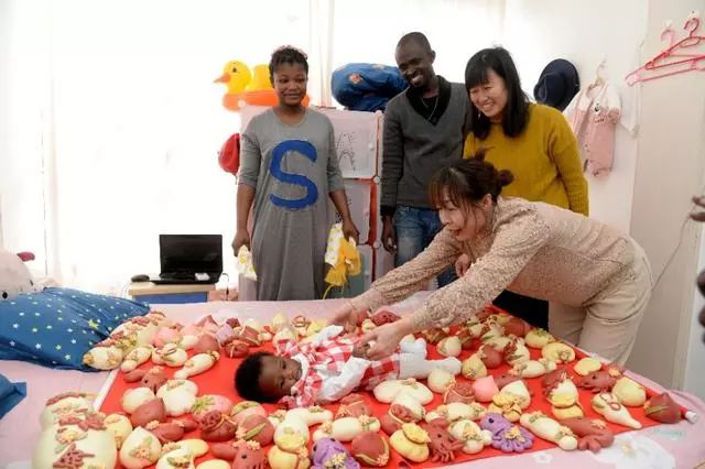 個體戶劉梅夫婦為非洲小孩免費制作了具有膠東民間特色的百歲面塑,讓他們感受到不一樣的民俗文化招遠吉祥如意喜慶餑餑工作坊的劉梅得知這一消息后,連夜為孩子加工制作了一套精美的“百歲面塑”,因為臨近春節(jié)比較忙就委托作者帶來為 “雷揚”小朋友慶?!鞍贇q”吉辰。小區(qū)的鄰居們也不失事機地來到她們家中表示祝賀。身處異國他鄉(xiāng),入鄉(xiāng)隨俗的民間習俗禮節(jié)著實讓這一家非洲人覺得距離的親近和文化交流的必要。
