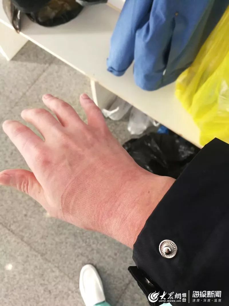 從童曉輝傳回來(lái)的現(xiàn)場(chǎng)照片可以看到,6個(gè)小時(shí)工作后,脫下防護(hù)服,童曉輝的全身都濕透了,手被三層橡膠手套勒得變了形,額頭也被防護(hù)鏡壓得痕跡明顯。憔悴的容顏,卻阻礙不了他為了醫(yī)者之名的付出,我們相信,有這些奔赴在一線的“戰(zhàn)士們”,我們終將戰(zhàn)勝這場(chǎng)疫情。