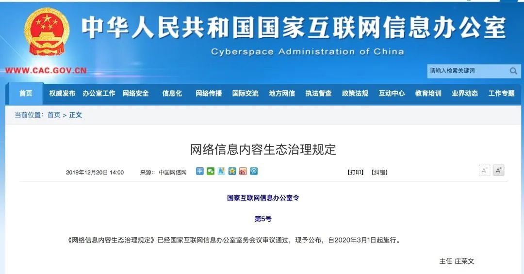 網(wǎng)絡(luò)信息內(nèi)容生態(tài)治理規(guī)定