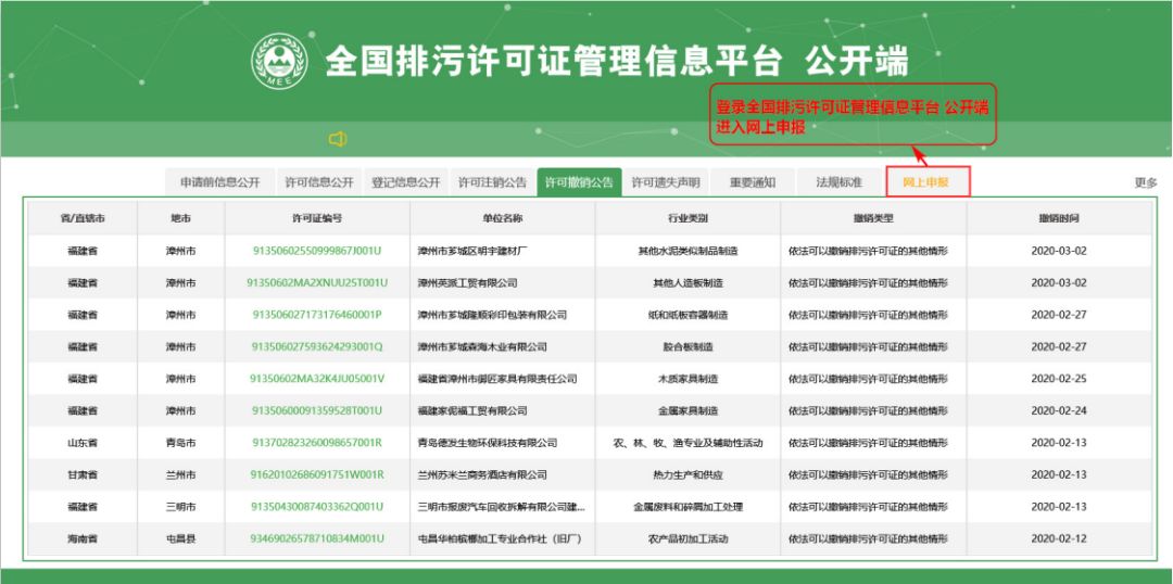 登錄全國(guó)排污許可證管理信息平臺(tái)公開(kāi)端