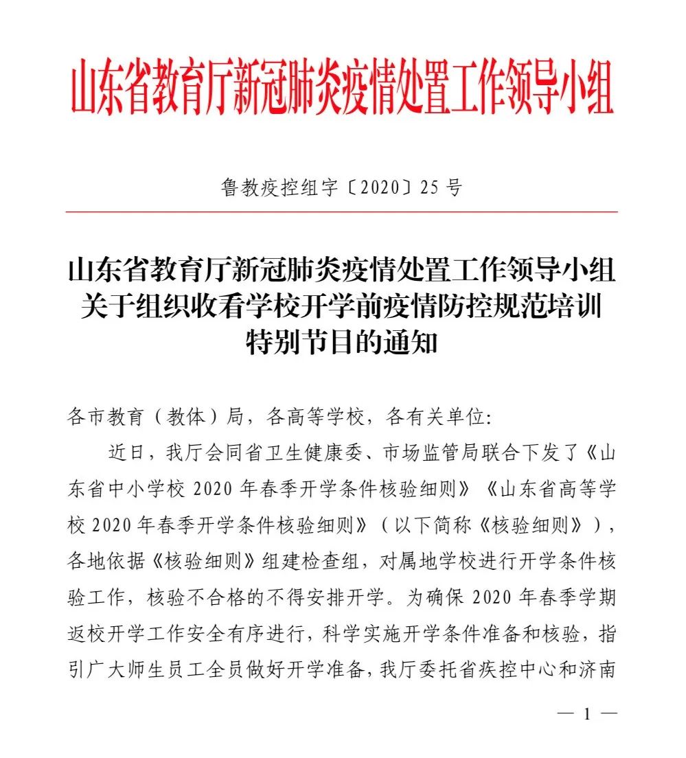 山東省教育廳新型冠狀病毒感染肺炎疫情防控工作領導小組