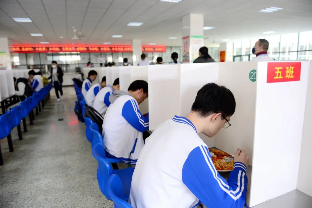 濟(jì)南十一中學(xué)生教室內(nèi)單人單桌就餐