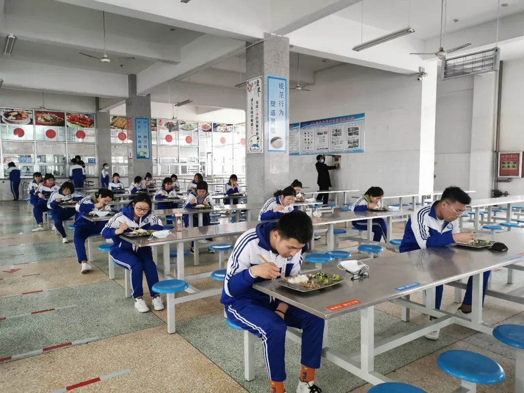 為取保就餐安全,各學(xué)校詳細(xì)制定就餐方案,細(xì)化排隊測溫、腳底消毒、有序洗手、排隊取餐、按號就坐、文明用餐、排隊收殘、保潔消毒等各個環(huán)節(jié),通過錯峰就餐、分散領(lǐng)餐就餐、單向間隔就餐等方式減少師生密集接觸。