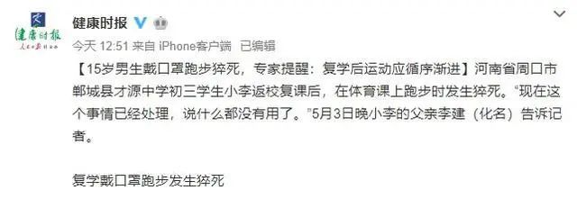 專家:學(xué)生上體育課不可戴N95口罩