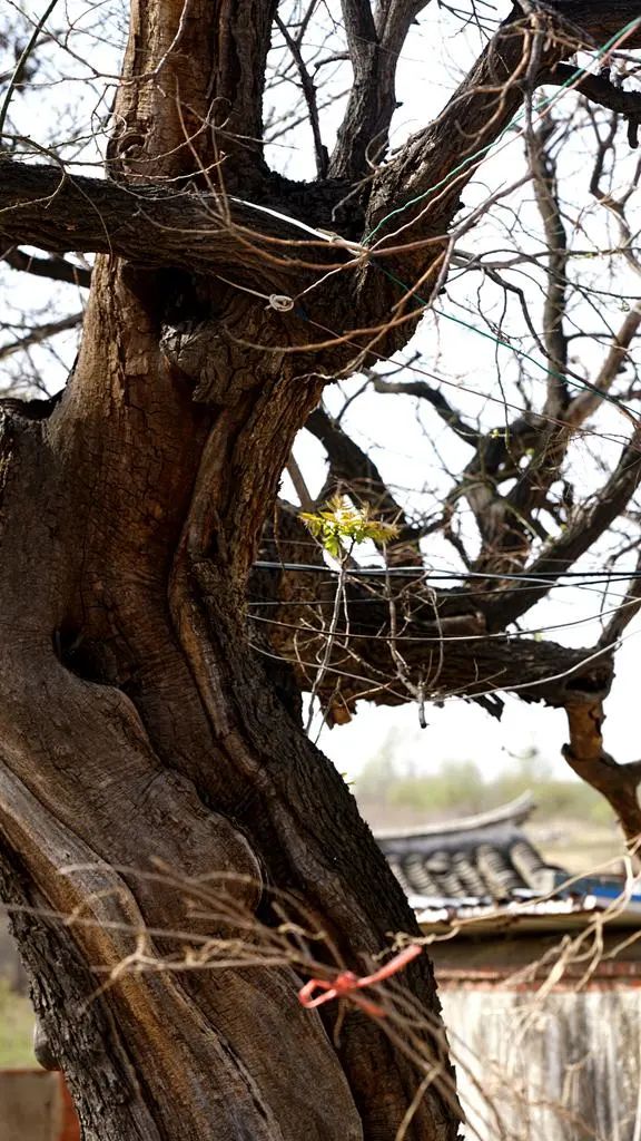 到底是幼小的香椿懷春,喜歡:“大叔控”?還是這株古槐又遇新春,抱得椿樹“枯木逢春”?
