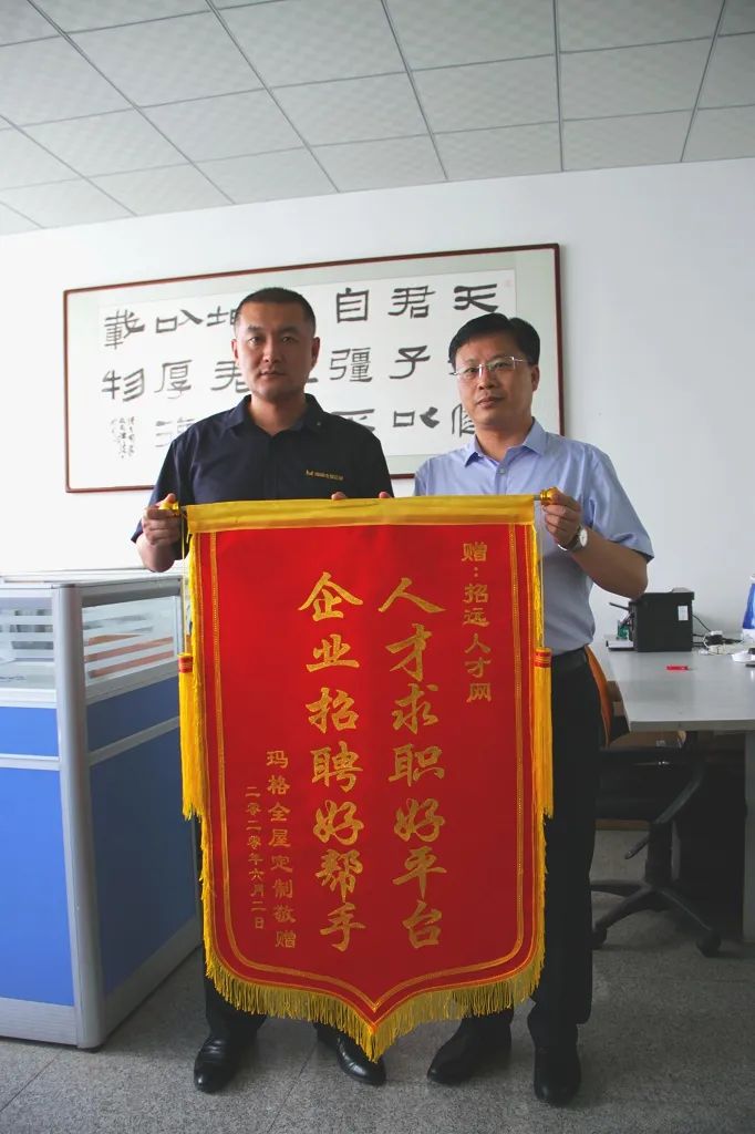 6月9日,招遠(yuǎn)居然之家瑪格全屋定制王總專程來到招遠(yuǎn)人才網(wǎng)(www.zyrencai.cn),送來一面繡著“企業(yè)招聘好幫手,人才求職好平臺(tái)”的錦旗,以此表達(dá)對(duì)招遠(yuǎn)人才網(wǎng)的肯定、以及感謝招遠(yuǎn)人才網(wǎng)為企業(yè)輸送急需的各項(xiàng)人才。