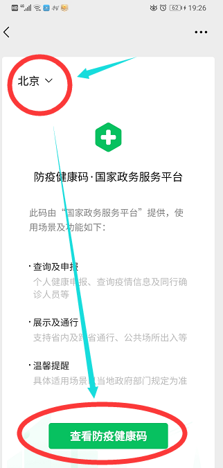 第二步 地區(qū)選擇“北京”后點(diǎn)擊“查看防疫健康碼”進(jìn)入“全國(guó)一體化政務(wù)服務(wù)平臺(tái)”界面,點(diǎn)擊“立即領(lǐng)取”,按照操作提示依次進(jìn)行下列步驟直至進(jìn)入填寫(xiě)個(gè)人信息界面。