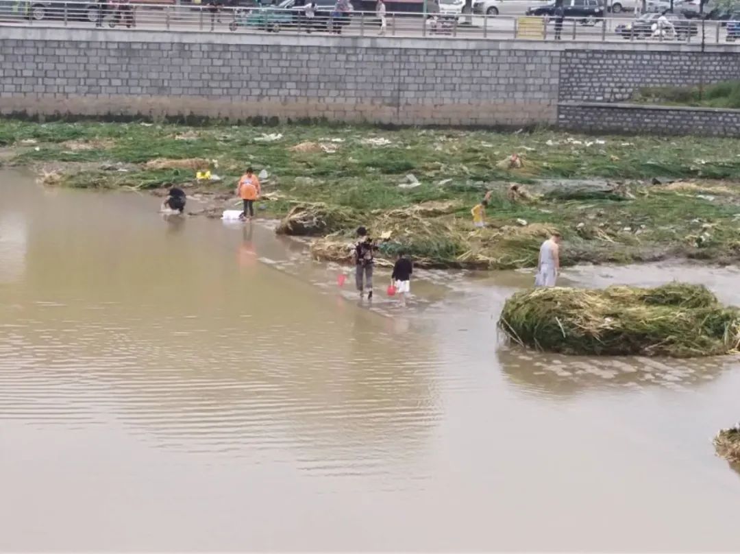 8月27日上午,市綜合行政執(zhí)法局泉山中隊在日常巡查中發(fā)現(xiàn),金泉河里來了許多捕魚的市民。他們有的在橡皮壩周圍撒網(wǎng)捕魚,有的下河在裸露的河床上翻找魚蝦。由于還在暑假期間,撈魚的人群中不乏孩子的身影。