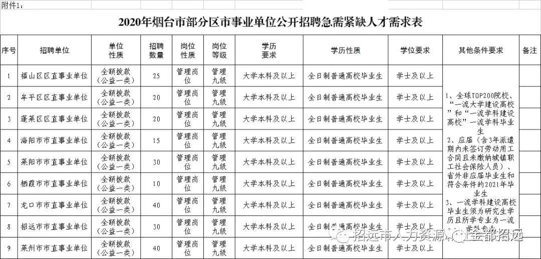 按照《事業(yè)單位人事管理?xiàng)l例》(國(guó)務(wù)院令第652號(hào))等規(guī)定,2020年福山區(qū)、牟平區(qū)、蓬萊區(qū)、海陽(yáng)市、萊陽(yáng)市、棲霞市、龍口市、招遠(yuǎn)市、萊州市事業(yè)單位面向全球TOP200高校畢業(yè)生、“一流大學(xué)建設(shè)高?!焙汀耙涣鲗W(xué)科建設(shè)高?!币涣鲗W(xué)科(簡(jiǎn)稱“雙一流”)畢業(yè)生公開(kāi)招聘急需緊缺人才230名。現(xiàn)公告如下: