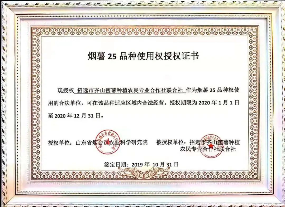 齊山蜜薯“身份證”