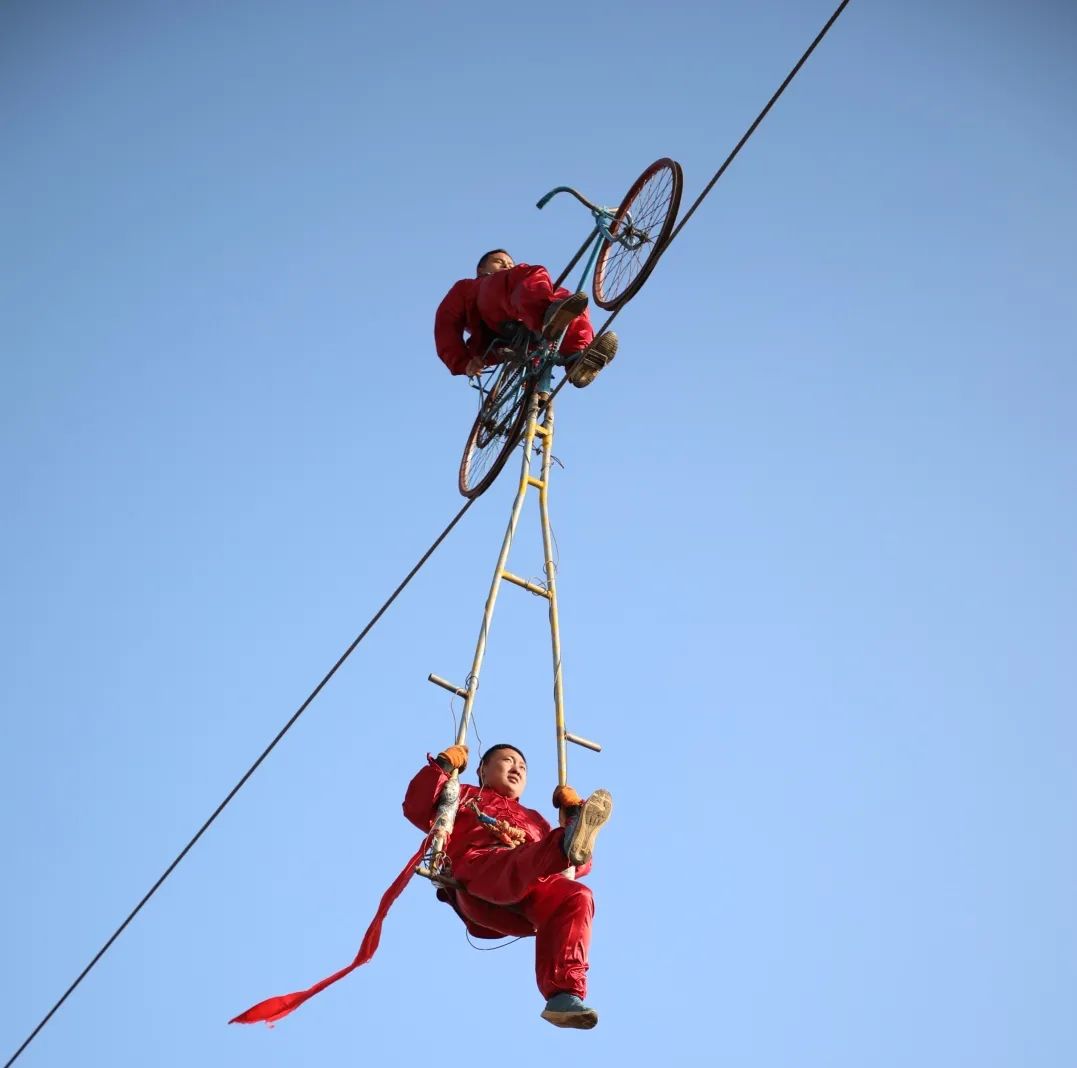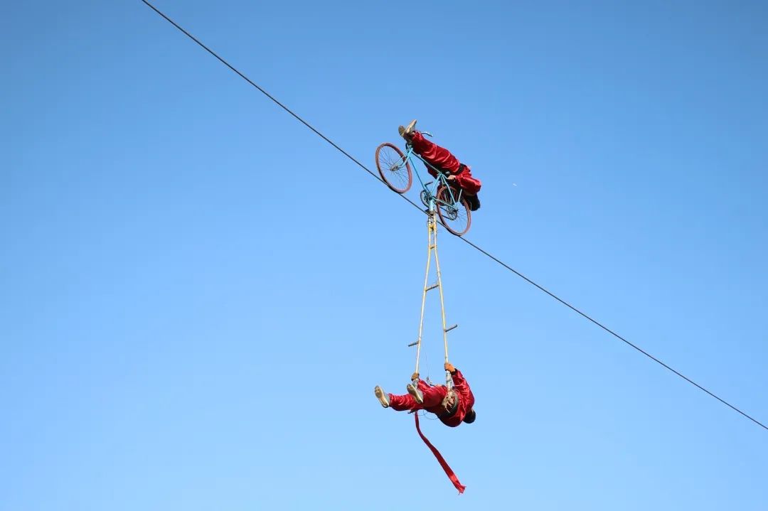 活動內(nèi)容:在戲臺進行集體蹬人、倒立技巧、高椅倒立、草帽秀、集體造型、獨輪車、單桿技巧、頂花壇、水流星、頂壇、高桿技巧的表演。