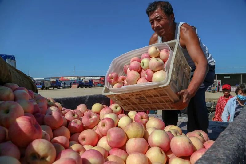 拍攝于招遠(yuǎn)市畢郭鎮(zhèn)蘋果交易市場(chǎng),經(jīng)過采摘、分揀、裝車,滿載蘋果的大車緩緩駛出市場(chǎng),招遠(yuǎn)的蘋果奔向全國各地……