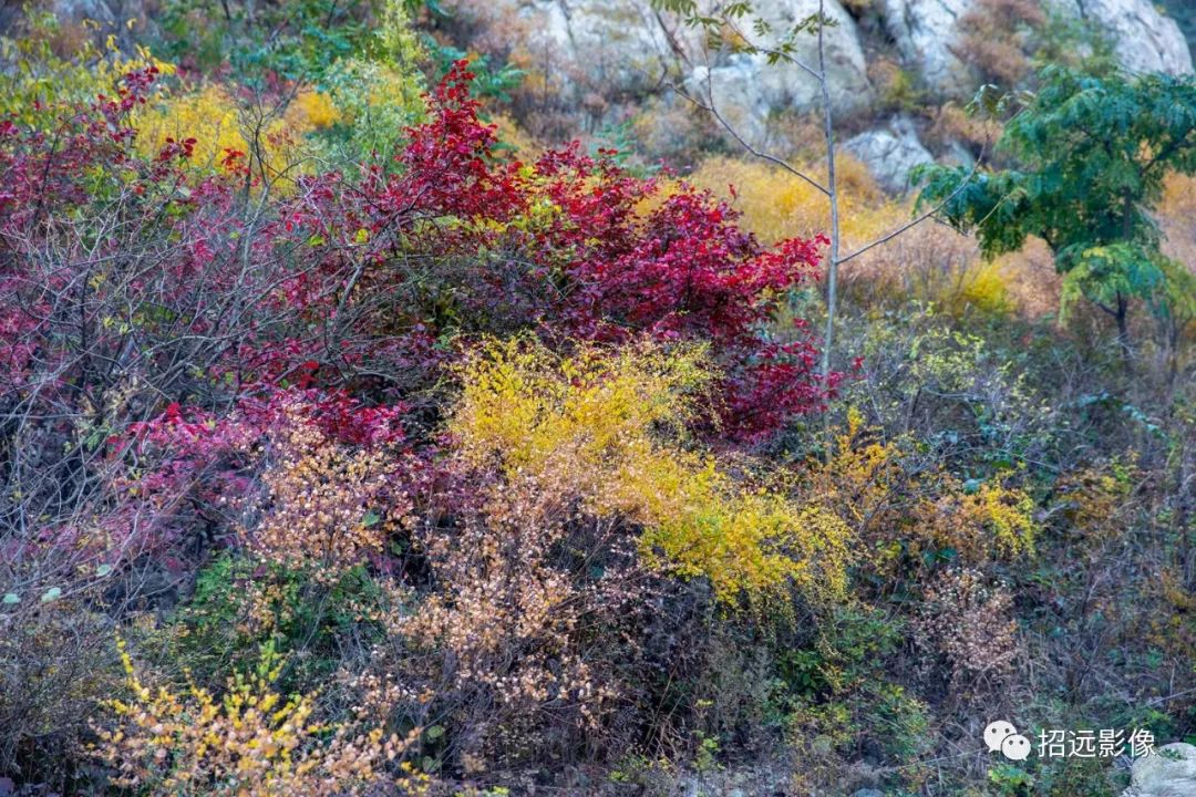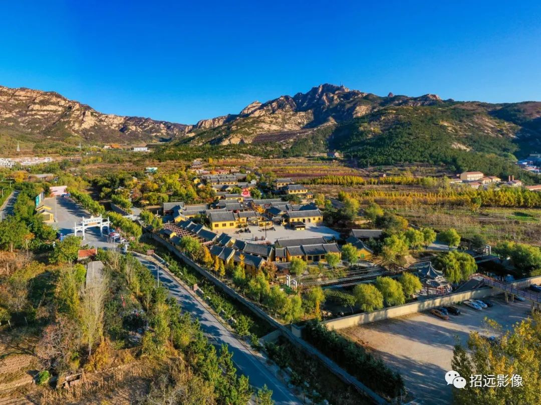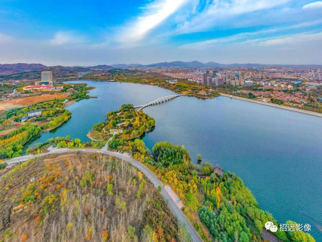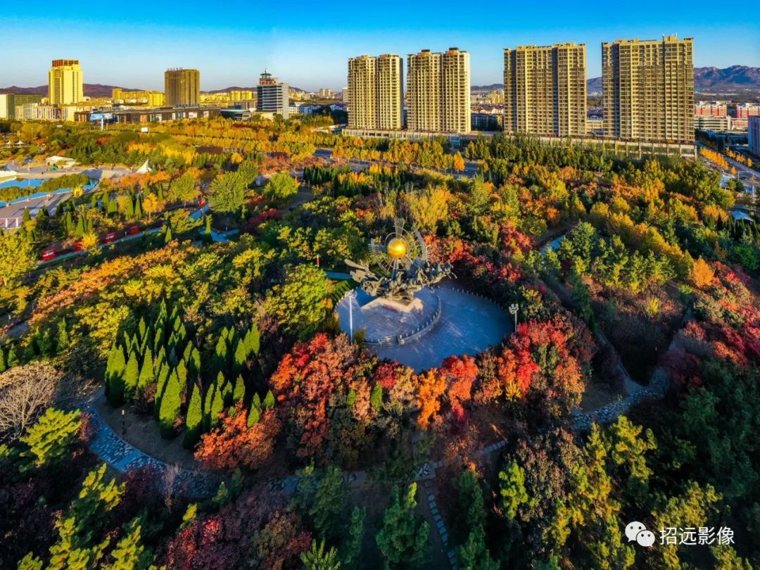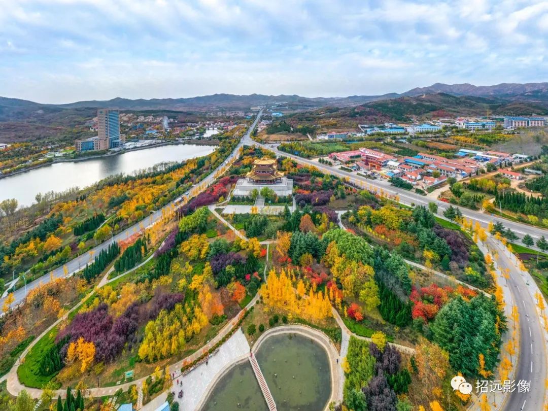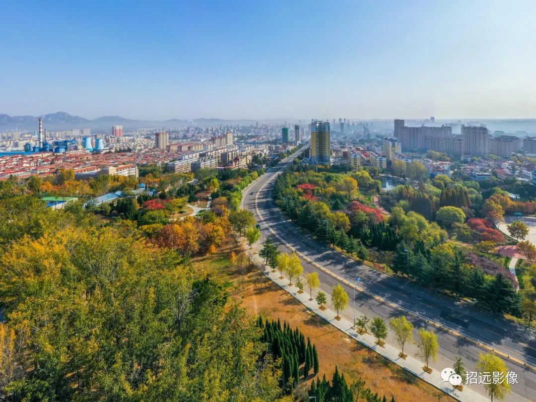 招遠(yuǎn)的秋天,藍(lán)天白云,層林盡染,