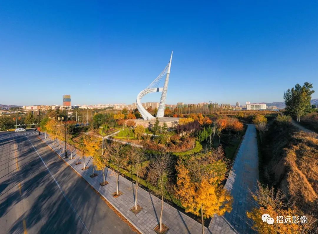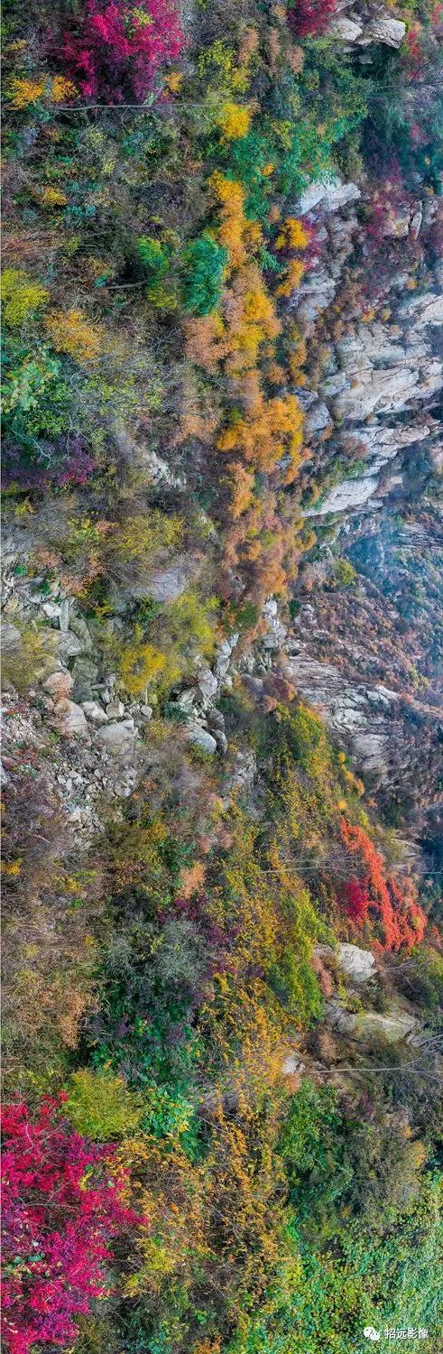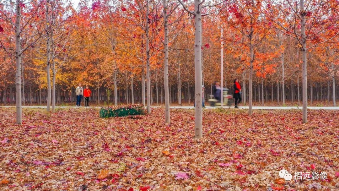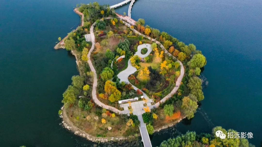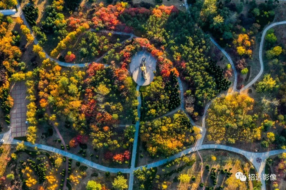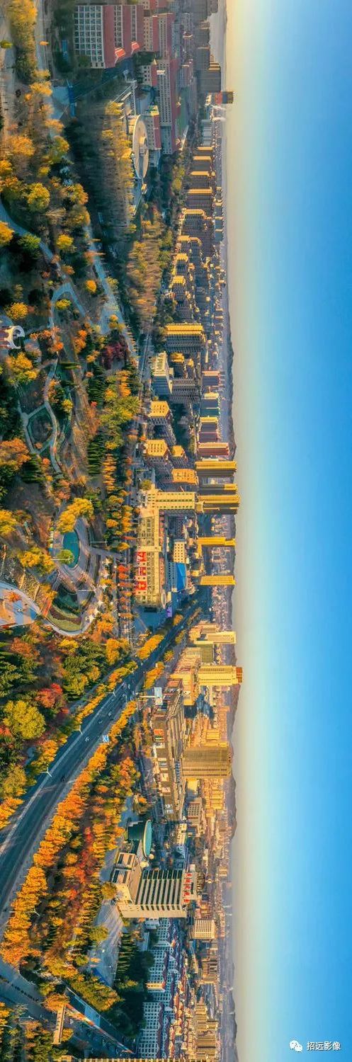 招遠(yuǎn)的秋天,藍(lán)天白云,層林盡染,