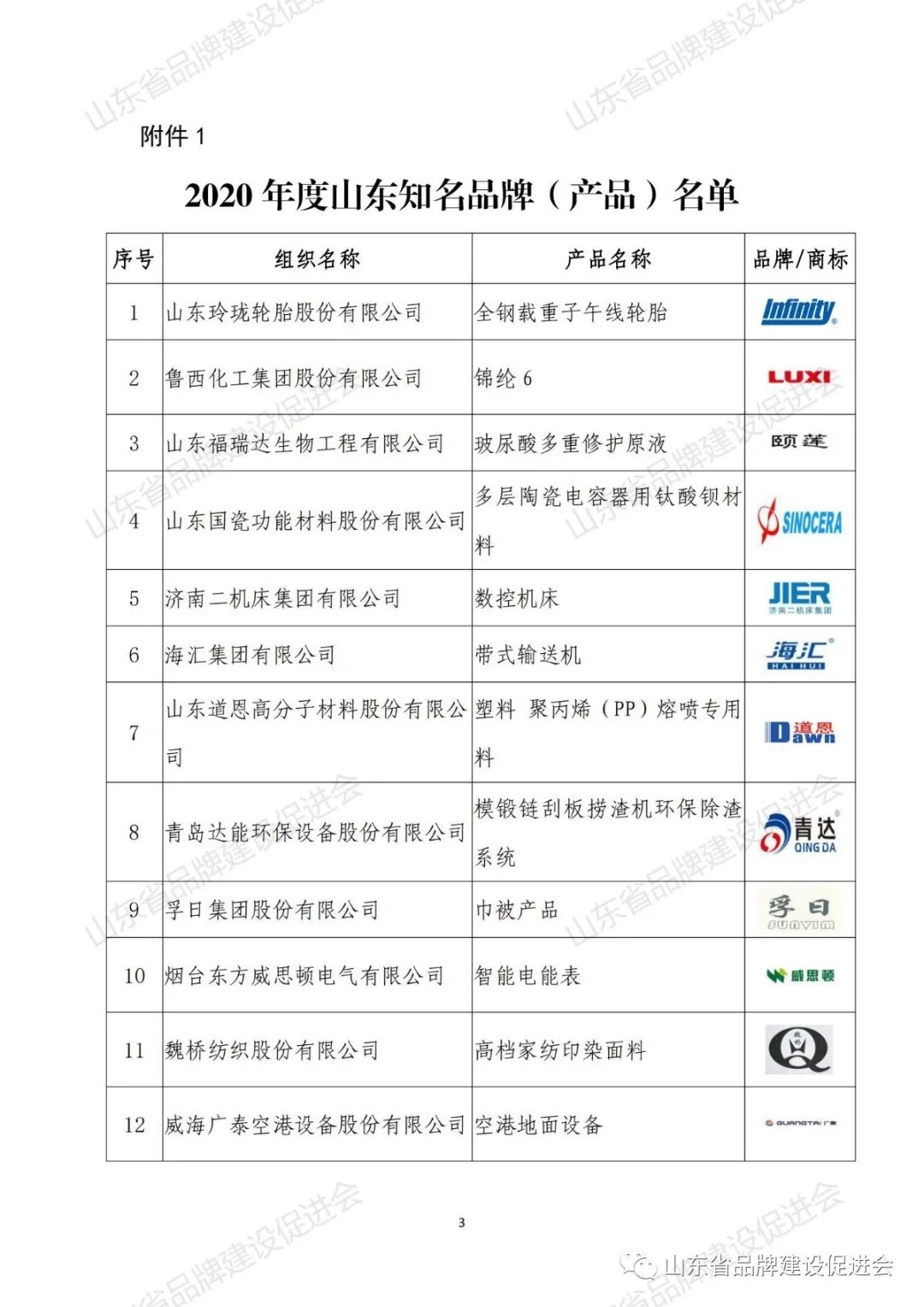 近日,山東省品牌建設促進會發(fā)布《關于發(fā)布2020年度山東知名品牌的公告》: