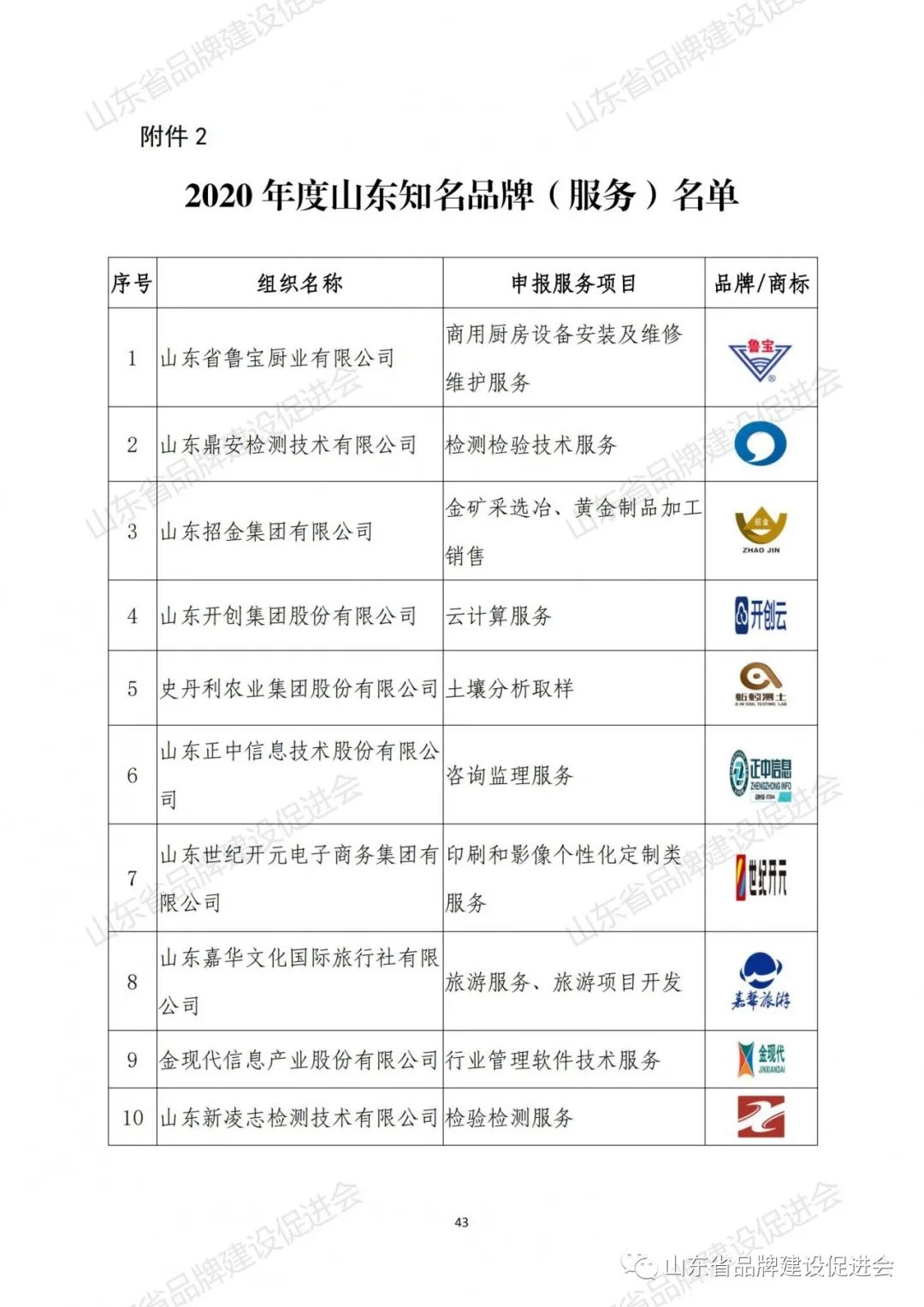 認定山東招金集團有限公司等企業(yè)申報的120個服務項目為2020年度山東省知名品牌(服務)。