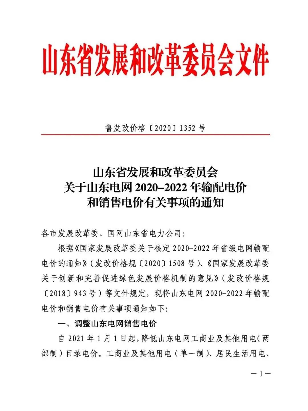 11月25日,山東發(fā)改委出臺《關(guān)于山東電網(wǎng)2020-2022年輸配電價(jià)和銷售電價(jià)有關(guān)事項(xiàng)的通知》。