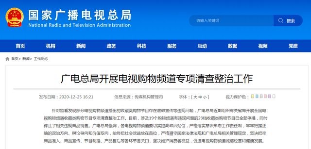 目前,涉及19個購物頻道有違規(guī)問題的23檔收藏類購物節(jié)目已全部停播,同時停止了相關(guān)違規(guī)商品銷售。