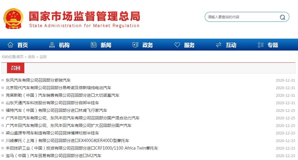 公布了一批車輛召回信息。