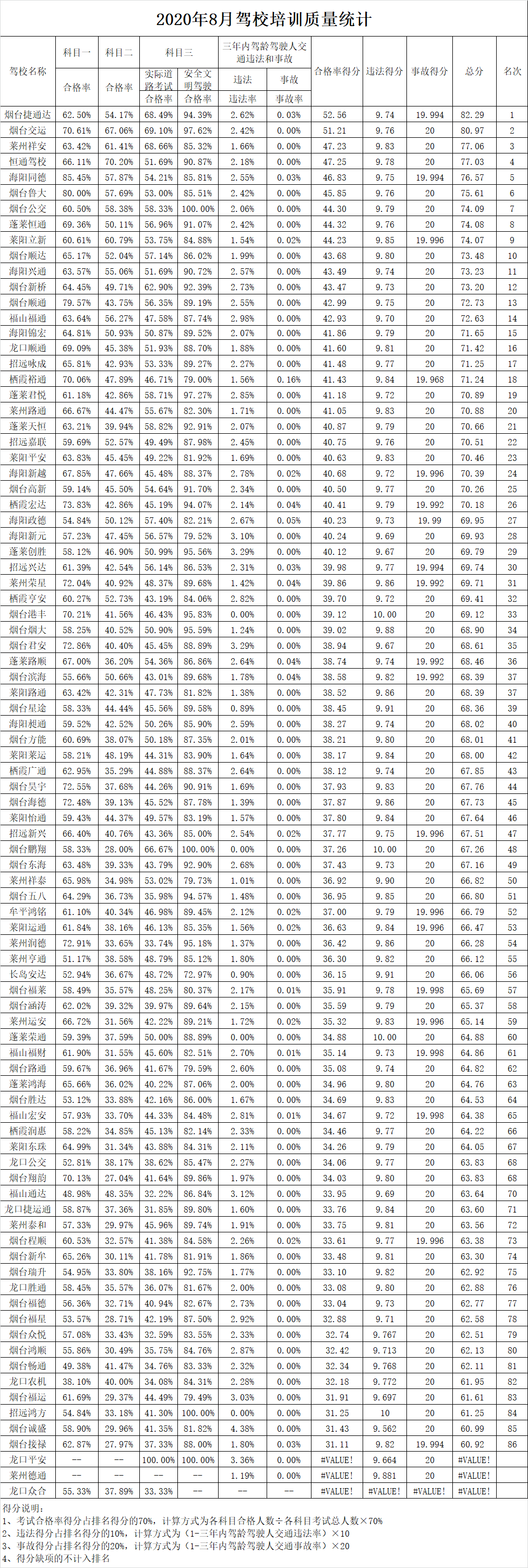 全宇宙只有不到1%的人點擊上方進(jìn)入招遠(yuǎn)信息港你真是個特別的人想要報考駕駛證的朋友注意煙臺交警發(fā)布煙臺8月駕校培訓(xùn)質(zhì)量排名表想考駕駛證的朋友可以根據(jù)名單結(jié)合自己的實際需求來選擇自己要報名的駕校(如不清楚